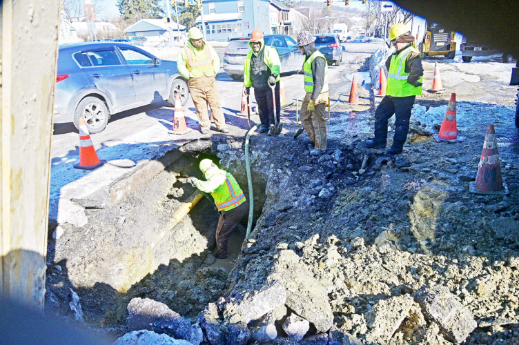 A resident along Scotch Valley Road blows snow out of his long driveway on Wednesday afternoon. Mirror photo by Patrick Waksmunski