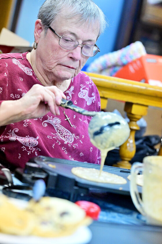 A crew from Breezeline works on a utility pole along Strawberry Alley in Hollidaysburg on Monday afternoon. Mirror photo by Patrick Waksmunski