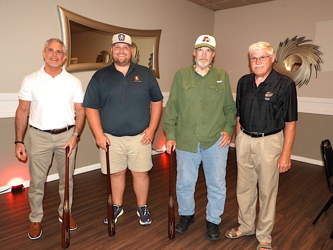 Courtesy photo Altoona Curve Booster Club President Joe Keller (right) presents Louisville Slugger bats to this year’s honorees. They are (from left): Terry Dandrea, Ed Moffett and Barry Long.