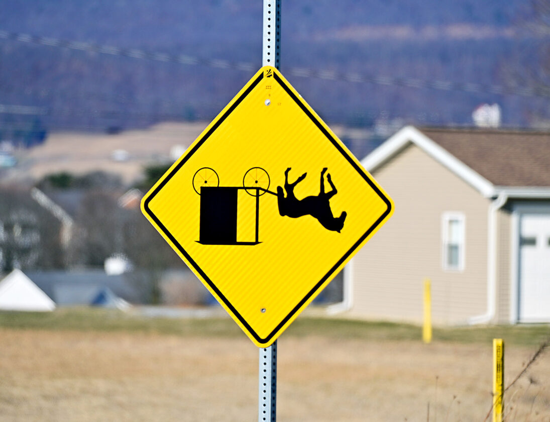 An inverted sign apparently lost a screw as it hangs along Route 866 south of Martinsburg on Tuesday afternoon. Mirror photo by Patrick Waksmunski