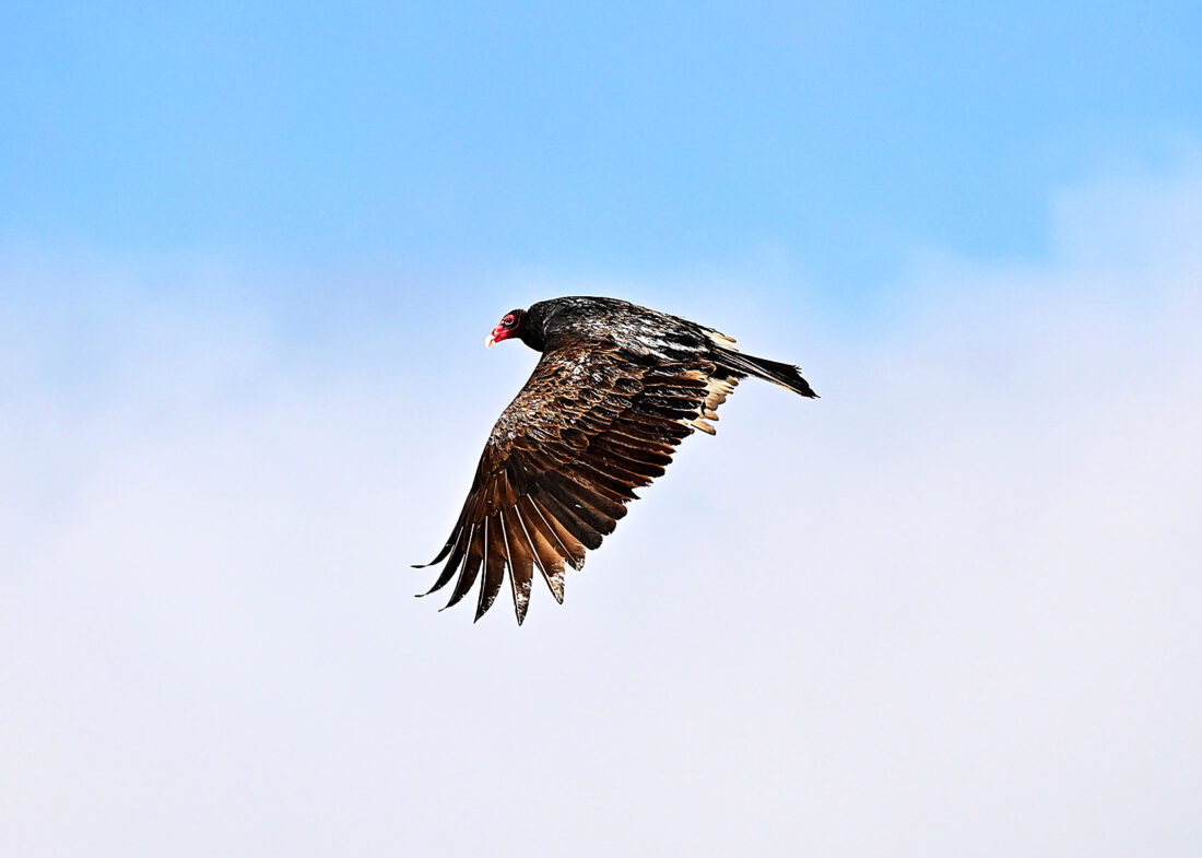 A lone turkey vulture circles carrion along the Coupon-Gallitzin Road just north of Tunnelhill on Monday afternoon. Mirror photo by Patrick Waksmunski