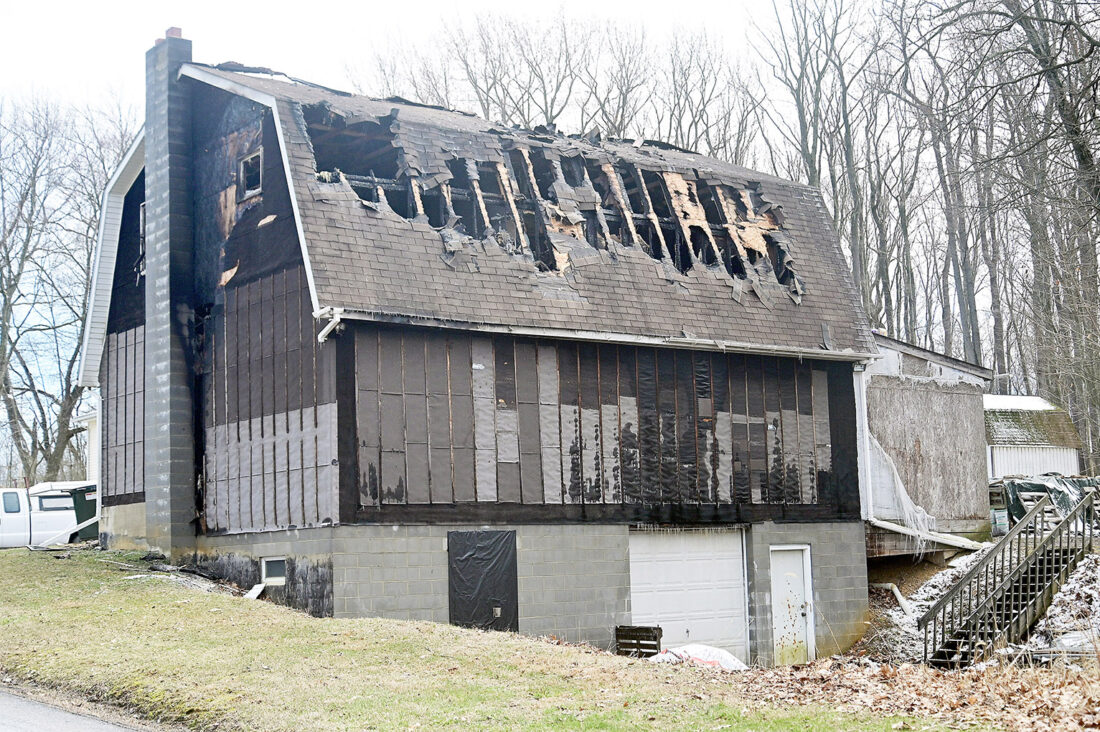 Firefighters from Friendship Fire Company responded to a two-alarm chimney fire at 217 Dumb Hundred Road south of Roaring Spring, just after 8 a.m. Wednesday. No injuries were reported, but the fire caused significant damage to the structure. Mirror photo by Patrick Waksmunski