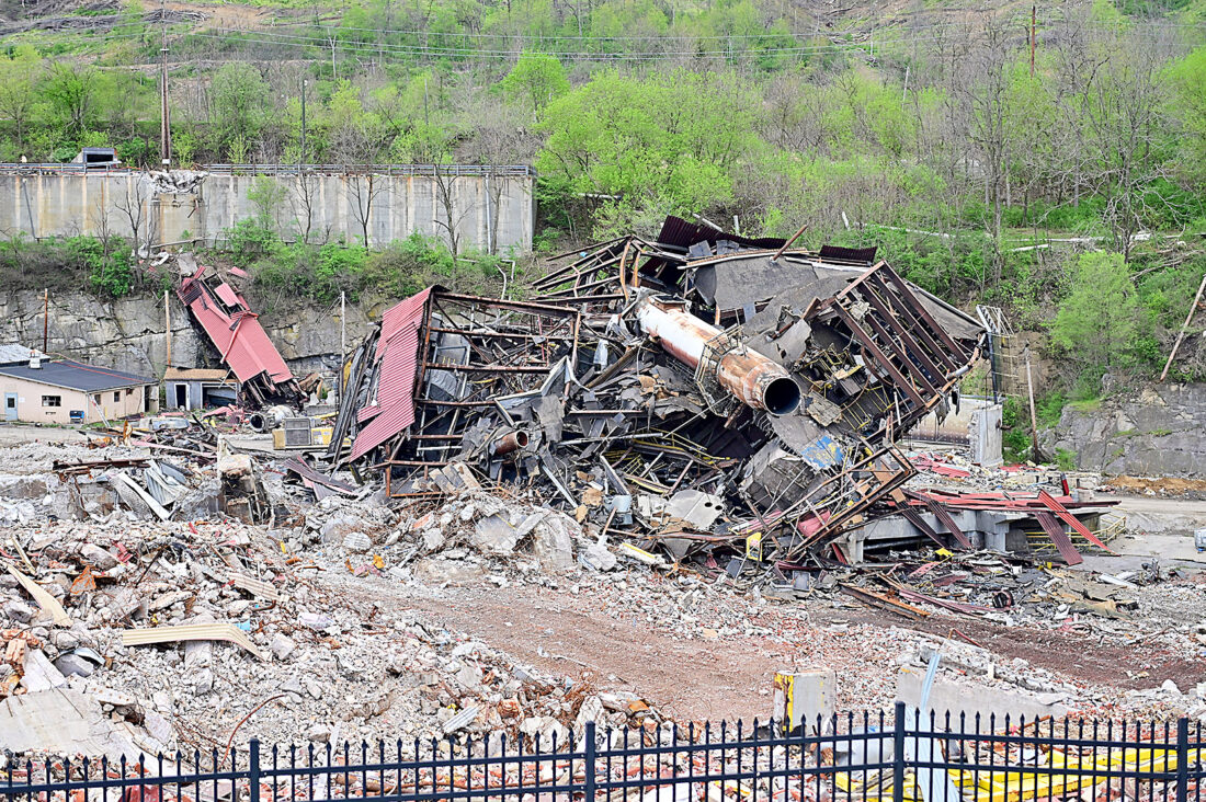 The last of the of standing buildings at the former Appvion paper mill in Roaring Spring have been razed this week. Mirror photo by Patrick Waksmunski