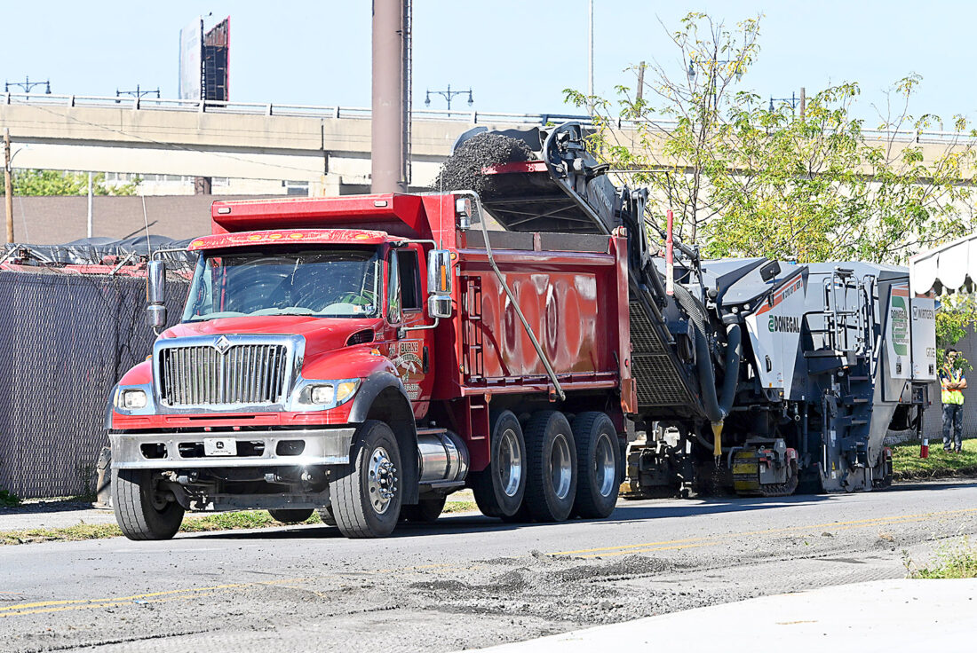 A crew from Donegal Construction, New Stanton, mills the 800 block of Eighth Avenue in Altoona on Thursday afternoon. Mirror photo by Patrick Waksmunski