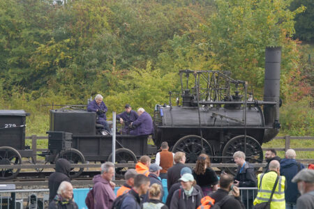 - Railway enthusiasts look at the Locomotion No 1 replica as it is prepared at the Locomotion Museum in Shildon, County Durham, Friday, Sept. 26, 2025, on its first official journey in 200 years from the Locomotion Museum in Shildon to Darlington, as part of celebrations marking the 200th anniversary of British passenger rail services. (Owen Humphreys/PA via AP)