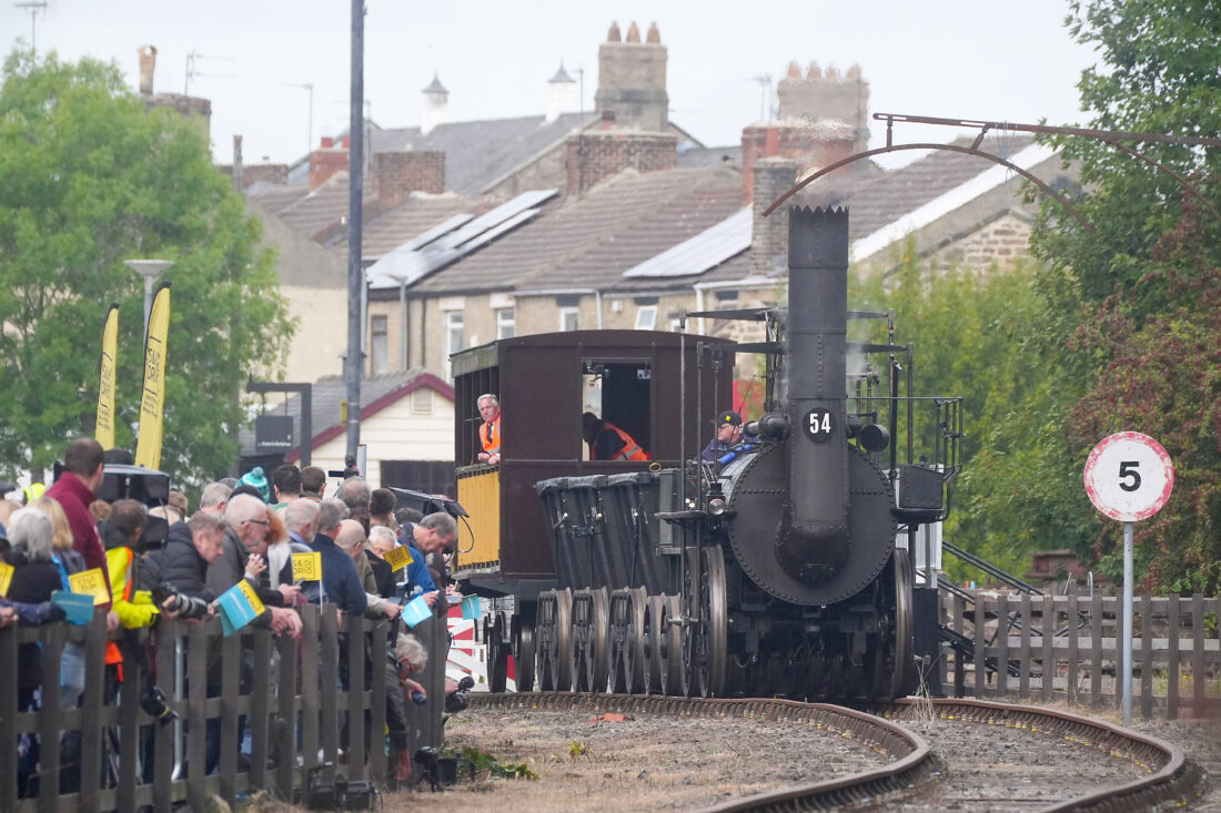 - Replica Locomotion No1 approaches Heighington station, County Durham, Friday, Sept. 26, 2025, on its first official journey in 200 years from the Locomotion Museum in Shildon to Darlington, as part of celebrations marking the 200th anniversary of British passenger rail services. (Owen Humphreys/PA via AP)