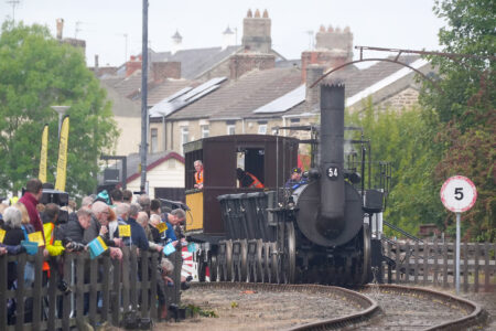 “It was amazing to see it moving,” said Louise Jones, 39, who watched the replica train begin its journey. “My dad used to work on the railways. This was a once-in-a-lifetime opportunity to see what it would have looked like 200 years ago.”
