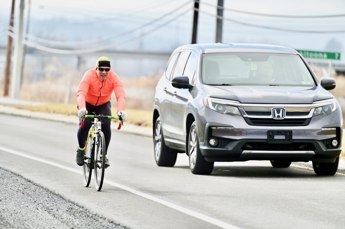 Mirror photo by Patrick Waksmunski / Jerry Harlow of Hollidaysburg sets out on a 30-mile bike ride along Loop Road on Friday afternoon.