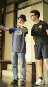 - Vance Finamore (Bernstein) and Collin Matthews (Seymour) rehearse a scene from Bellwood-Antis’ upcoming production of “Little Shop of Horrors.” Courtesy photo