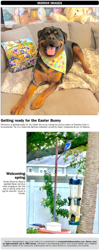 Amateur photographers may email photos for consideration to community@altoonamirror.com. Photos must be high-resolution and in JPEG format. Information accompanying photos must include details and a daytime telephone number to be considered. Submissions will be chosen based on composition and creativity.