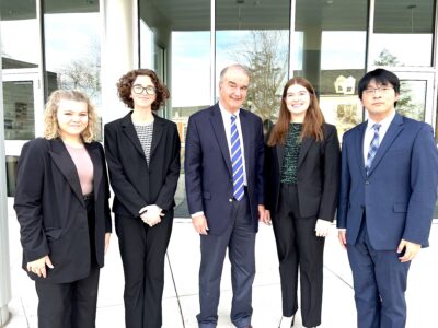 Juniata College’s nationally ranked mock trial team has wrapped up its fall invitational season and is preparing for the spring. Several Blair County students and their coach, from the left, Regan Farringer of Hollidaysburg, Alyssa Clark of Altoona, Coach David Andrews of Hollidaysburg,Olivia Day of Hollidaysburg, and Rich Wei of Altoona, were instrumental in the team taking home trophies in their last three invitational tournaments this fall at Cornell University, Dickinson College and St. Bonaventure University. Now, the team is gearing up for January competitions which include travel to Atlanta, New Orleans and Baltimore.