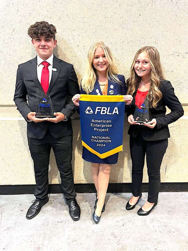 Avery Aungst, Aiden Wadel and Myah Douglas took home top honors in American Enterprise Project placing first out of 76 teams at the national competition.