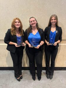 In 2022, the trio took home the first-place trophy in Introduction to Business Presentation. Their 2024 Business Ethics project focused on the ethical issues surrounding using Artificial Intelligence for customer service relations.