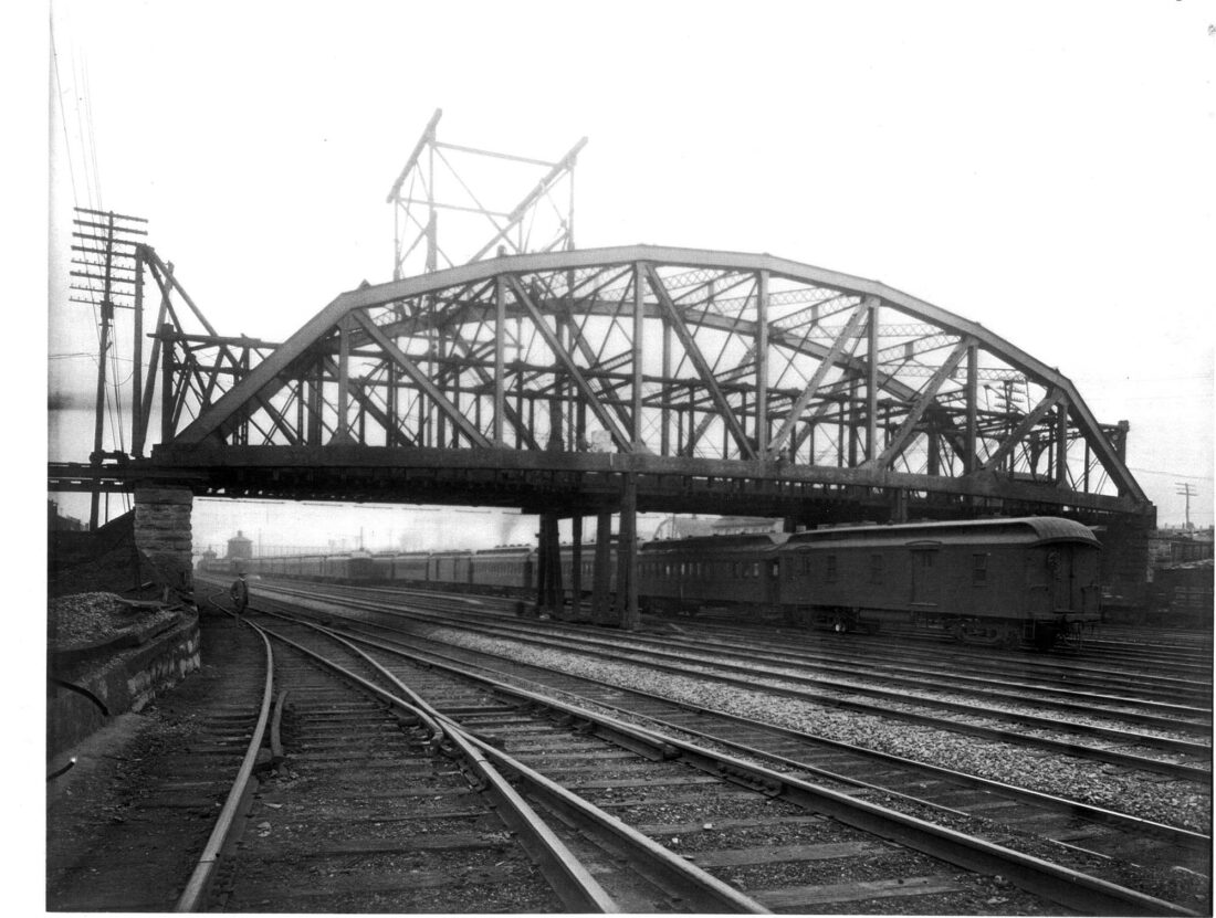 Leonard E. Alwine of Altoona submitted this photo of the “new” Seventh Street Bridge being built in the fall of 1912. The original iron bridge (square inside) was used as a base for the traveling crane for the construction of the trusses for the bridge being built. It was then torn out and the new bridge deck was built inside along with the trolley tracks.