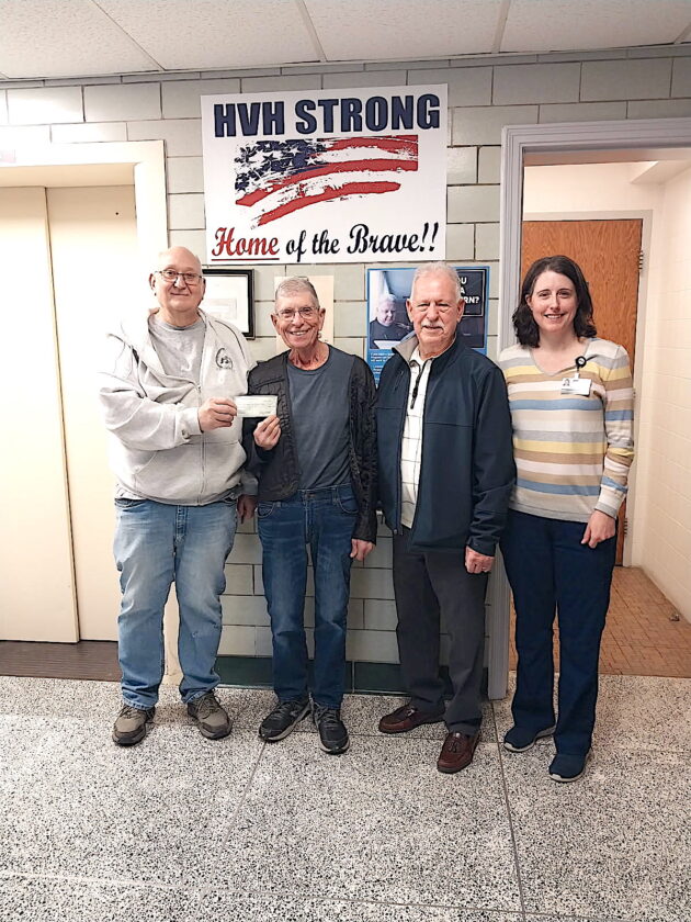 The Blair County Antique Auto Club recently presented a donation to the Hollidaysburg Veterans Home. Shown are (from left): David Fleig (president, BCAAC), Bob Fink (resident, HVH), Tom Smith (member, BCAAC) and Emily McDowell (volunteer services coordinator, HVH).