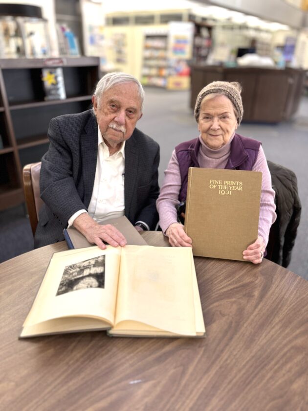 Tom and Marlene Russo are shown with selected volumes of “Fine Prints of the Year.” The couple recently donated an entire 16-volume set to the Altoona Area Public Library, in memory of their friend, Joe Servello. The library plans to make the volumes available for the community to view in the near future.