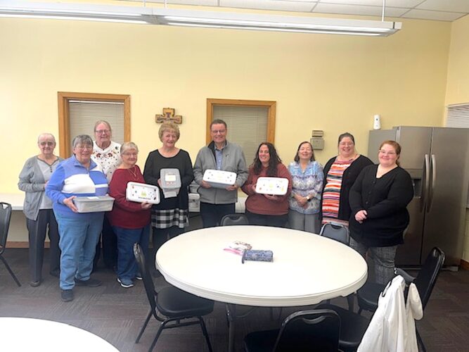 Through their work of Unity and Charity, Altoona Catholic Daughters of America Court Prince Gallitzin No. 2625 presented Jared boxes to Tim Balconi (president of the UPMC Altoona Hospital Foundation). Shown are (from left): Mary Grace Horton, Regent Donna Hoover, Carol Galioto, ...