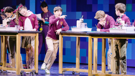 The musical also considers Auggie’s experience from the perspective of those around him, including his sister Via who feels overshadowed by her brother and the struggle of his parents to both protect Auggie and give him greater independence. There’s also Jack, who becomes Auggie’s best friend only to betray him to score points with popular kids. He ends up reconciling with Auggie, choosing to do his science project with him rather than the school bully.