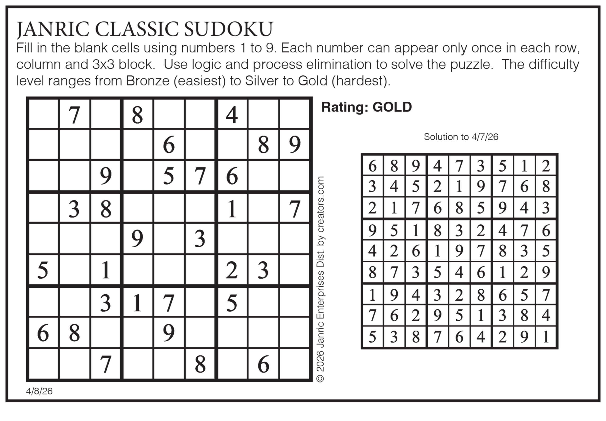 Today’s puzzles: April 7, 2026 Andrews McMeel Crossword https://www.altoonamirror.com/wp-content/uploads/2026/04/neal260407-scaled.png Find the ...