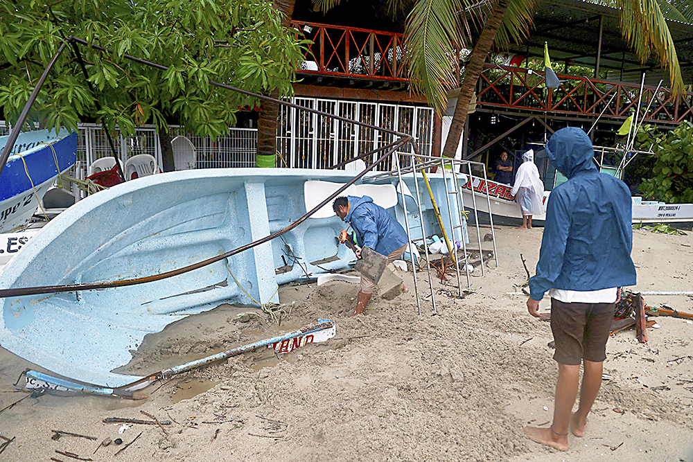 The Associated Press / A person removes sand from a boat that was taken offshore in preparation for Hurricane Erick after the storm hit near Puerto Escondido, Oaxaca state, Mexico, on Thursday.