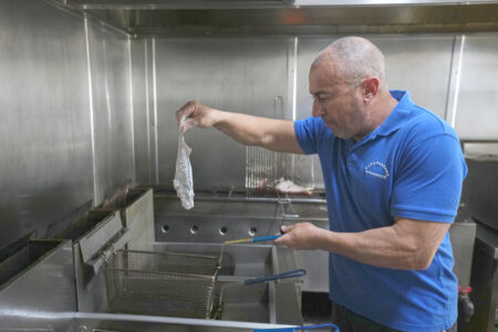 - Stefanos Mentonis, owner of Stefanos restaurant, cooks lionfish in Larnaca, Cyprus, in the eastern Mediterranean, Thursday, Dec. 18, 2025. (AP Photo/Petros Karadjias)