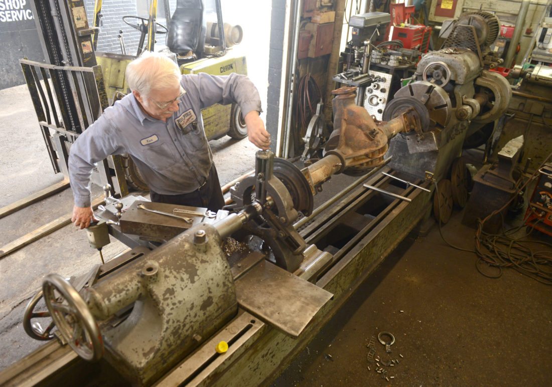 Mirror photo by Gary M. Baranec Ken Loucks, a machinist and welder at Penn Public Truck & Equipment Inc., rebuilds a spindle on a drive housing. The company was founded in 1918 and started out making wheels and springs for horse-drawn carriages. Today, Penn Public offers numerous services and is about to celebrate 100 years in business.