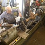 “During World War II, the employes here were exempt from service. Penn Public had a contract with the Army to make tent stakes, so it exempted employees from serving. However, all of the men eligible to serve did serve during the war, so Penn Public had to hire younger guys to fill the contracts for tent stakes. This was in 1943-44. A lot of them were here when I started in 1970,” said machinist/welder Kenneth Loucks.