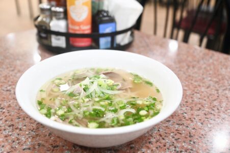 So far, two pho dishes have been very popular — Pho Tai, rare round sliced beef in a slow-simmered beef broth and Pho Dac Biet (Special Pho) the house special served in an extra large bowl with rare steak, brisket and tendon in rich beef broth, Nguyen said.
