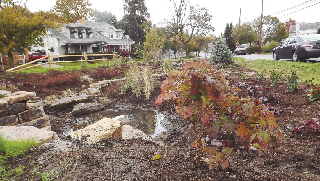 Mirror file photo by William Kibler / About 30 fourth-graders from Holy Trinity Catholic School, Altoona Campus, along with several teachers, employees of the Blair County Conservation District and Stiffler McGraw engineers, planted this rain garden last year at the elementary school, formerly known as St. Therese of the Child Jesus School.