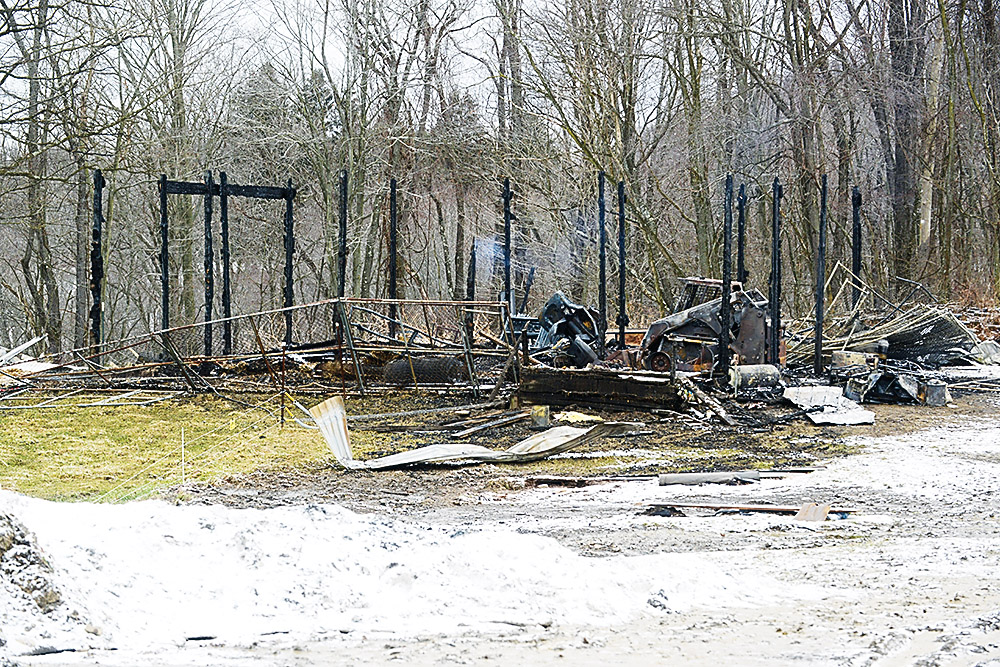 According to Carrolltown Deputy Fire Chief Brad Kelly, units from five fire companies responded to the 2:33 a.m. call to find the barn already engulfed in flames and the roof caved in.