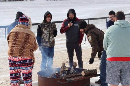 On shore, participants and supporters of all ages played games and warmed up by the fire, and snacked on hot dogs, donuts, coffee, hot chocolate and ice cream sandwiches provided by Sheetz.