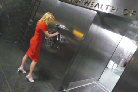 - Mirror photo by Rachel Foor / State Treasurer Stacy Garrity opens the vault in the Pennsylvania Treasury, which contains millions of dollars worth of unclaimed items from across the state.