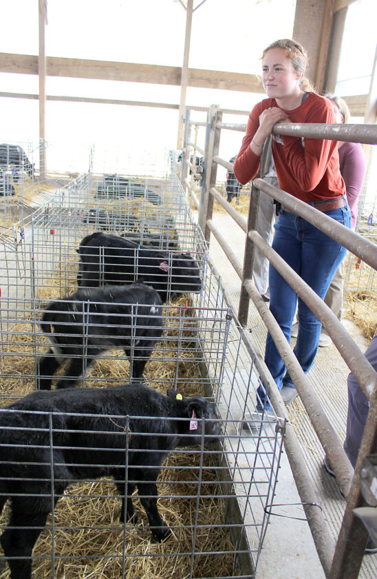 Grace Kulp looks over calf pens while leading a tour of the Kulp Family Dairy LLC on Wednesday. Mirror photo by Holly Claycomb