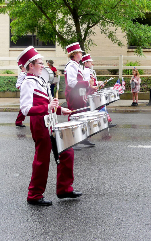 Members of the Altoona Area Junior High School marching band’s drum line perform along 12th Avenue in Altoona during the Memorial Day parade Monday. Mirror photo by Conner Goetz