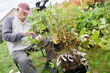 - Volunteer Ron Porter of Pine Grove Mills helps tag trees on Tuesday at ArtsAltoona. Mirror photo by Patrick Waksmunski