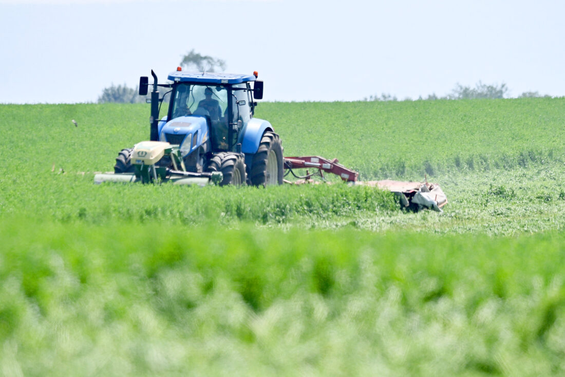 Ross Hershberger cuts a field of alfalfa at Elda-Chross Farms in Martinsburg on Monday afternoon. Mirror photo by Patrick Waksmunski