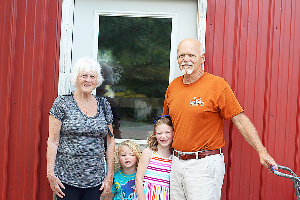Mirror photo by Colette Costlow Charlotte Cover (from left) stands with grandchildren. Zach and Zoey. and her husband, Eric, outside GardenFresh Produce in Sinking Valley.