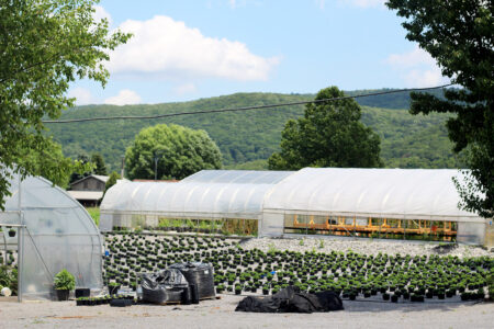 - Rows of greenhouses hold a variety of plants and flowers at Barnyard Posies in Sinking Valley. Mirror photo by Colette Costlow