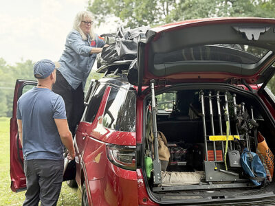 Nina Wolf of the Mountaineer Area Rescue Group’s north division rescue squad unpacks equipment used to search for Hilda Sossong. Ground teams, drones and dogs were used to conduct grid searches of the nearby properties on Wednesday. Mirror photo by Matt Churella