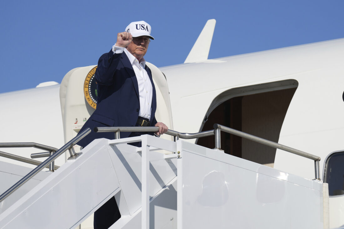 President Donald Trump boards Air Force One at Morristown Municipal Airport on Sunday in Morristown, N.J., en route to Washington. The Associated Press