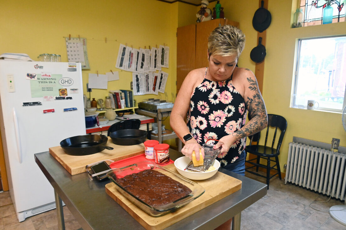 Mirror photo by Patrick Waksmunski / General manager Michele Sheehan of Loretto grates cheese.