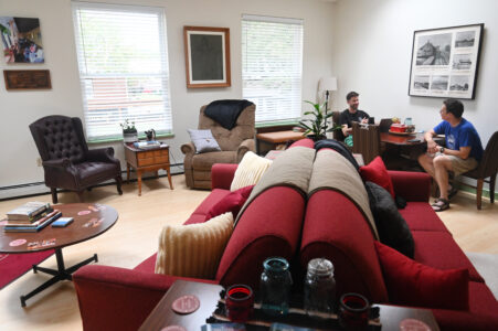 Mirror photo by Patrick Waksmunski / Scott Sorenson (left) of Newark, N.J., and Heath Hofmeister of Raritan, N.J., relax in the lounge.