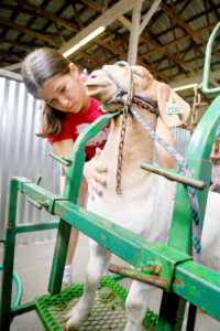 - Keyaira Shall, 13, of Loretto lathers up her market goat “Michael Jordan” in preparation of Tuesday’s Open Class Goat show at the American Legion County Fair in Ebensburg. Mirror photo by Patrick Waksmunski