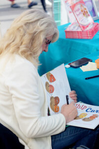 - Writer Cathy Breisacher signed copies of “Chip and Curly” at her booth Saturday. Mirror photo by Colette Costlow