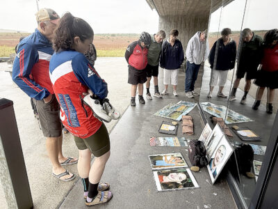 A group of Flight 93 National Memorial visitors gather at the Visitor Shelter to pay their respects to the plane’s 40 passengers and crew members whose actions prevented the flight from reaching its likely target of the United States Capitol building in Washington, D.C. Mirror photo by Matt Churella