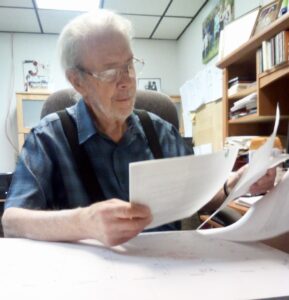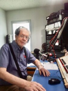 Courtesy photo / Jerry Puffer sits at his desk at a radio station.