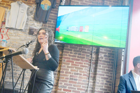 “(ABCD) gave me an abundance of creative freedom” to create art that “represents the past, present and future,” Garber said in a speech to about 40 people gathered at Levity Brewing Co. on 11th Avenue for the dedication, which was held indoors due to rain.