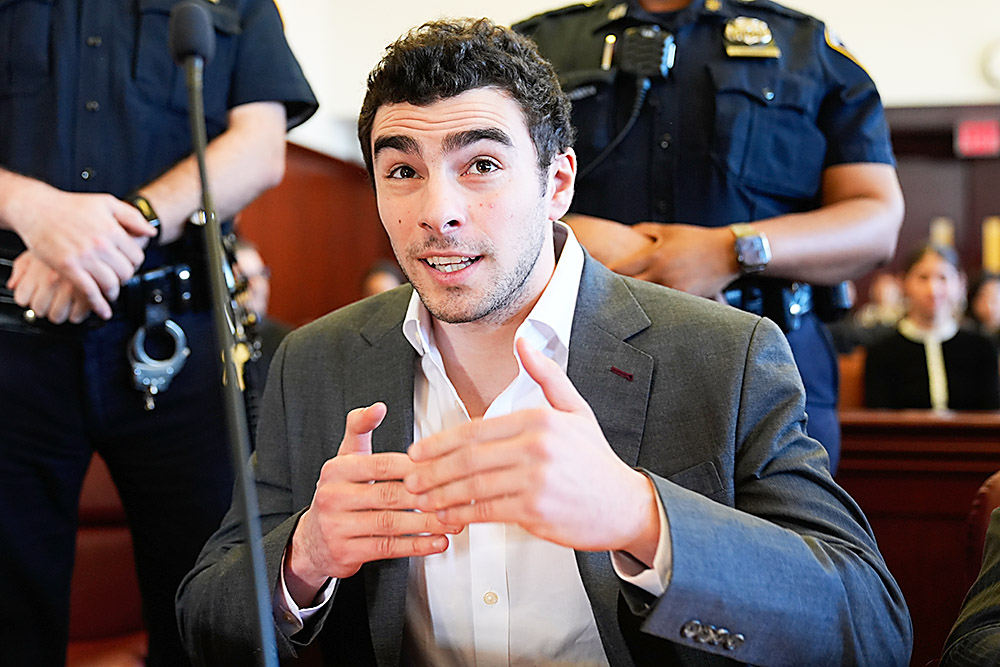 UnitedHealthcare CEO shooting suspect Luigi Mangione talks to a photographer as he appears in court in New York on Tuesday. Associated Press Pool photo by Seth Wenig