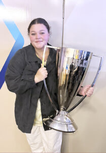 Mallory Neil poses with the Pittsburgh Riverhounds United Soccer League Championship trophy. Courtesy photo
