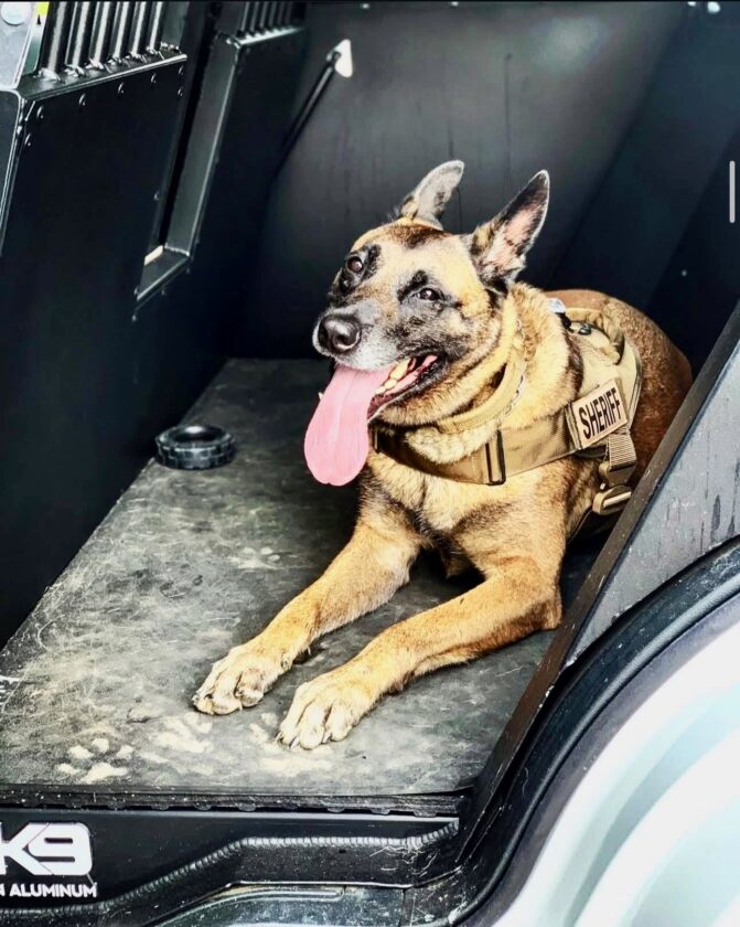 Rik, a former military dog trained in the detection of explosive devices, completed two tours in Afghanistan before being acquired by the sheriff’s office in 2017. At the time, the Belgium Malinois was about 3.5 years old.